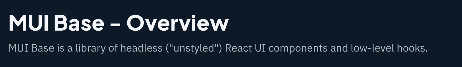 base 는 여기서 headless UI 를 의미하며, material 은 base + styled 로 사용되는 것을 확인하고서 headless UI 가 어떻게 쓰여지는 것인지에 대해서 감을 잡을 수 있었던 것 같다.