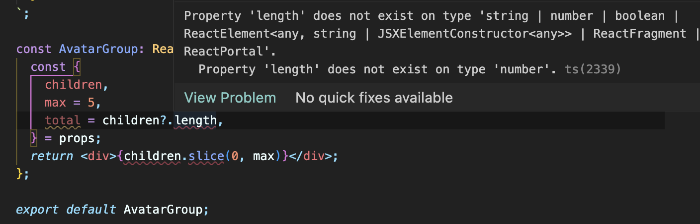 avatars 를 받고있는 children 자체가 배열이라고 판단이 되는데, ReactNode 로 도 배열형태 그대로 사용할 수 있으며, 다만 slice, map 과 같이 배열 관련된 메서드를 사용하지 못할 뿐 ReactNode 는 Iterable 한 타입을 대응할 수 있다. ReactFragment 타입이 ReactNode 의 Iterable 이기 때문이다.