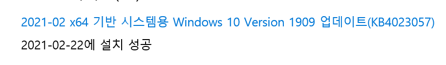 - 시작 표시줄에 있는 검색( 단축키 window + s )에, '업데이트'를 입력하면 "업데이트 확인" -> "업데이트 기록 보기"