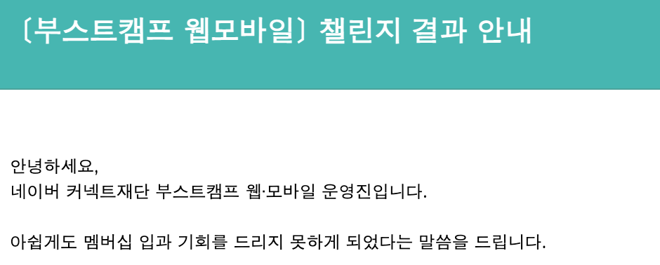 - 멤버십 과정엔 참여할 수 없게 되었지만, 챌린지에서 쌓은 지식과 경험을 토대로 더 성장할 수 있는 개발자가 되도록 노력해야겠다.