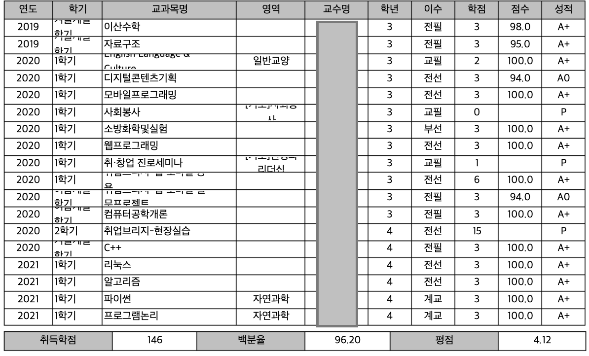 그래서 부전공으로 시작한 첫 학기부터, 학점을 위한 공부를 열심히 했다. 외부활동(장기현장실습-인턴)도 진행하고, 정보처리기사 자격증 취득을 위해 공부(필기 합격, 실기 준비) 등 나름 알차게 학교생활을 했다고 생각했었다.