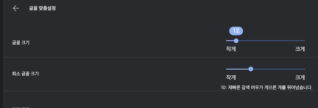 단순 + 버튼 으로 크기를 변경하는게 아니라 크롬의 기본 글꼴 크기 설정을 바꾸어 줘야 깨지는 것을 볼 수 있었다.