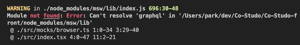 msw 는 이전에 dependency 로 graphql 을 설치받아 사용하고 있었는데, 0.45 버전 부터 devDependency 로 옮겨 사용하고있어 문제가 생겼다.