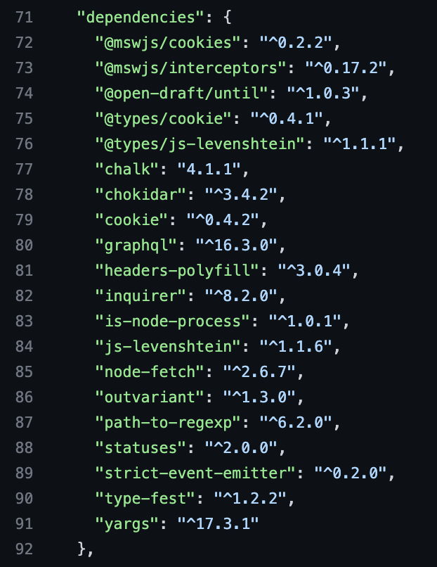 일부러 msw 의 0.44.2 버전의 패키지의 의존성을 보면, graphql 이 ^16.3.0 을 의존하는 것을 볼 수 있다.