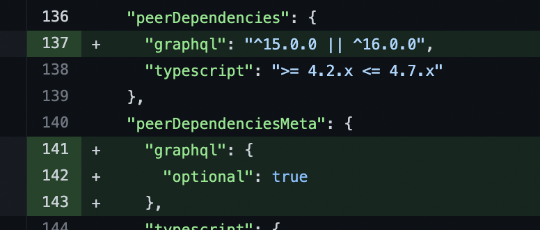 문제가 생긴 이유는 해당 Pull Request 때문인데, PR 에서는 15 버전의 graphql 도 사용하기 위해 graphql-js 를 peer dependency 로 사용해야 한다고 이야기한다. 16의 버전을 사용하도록 강제하면 안된다는 것이다.