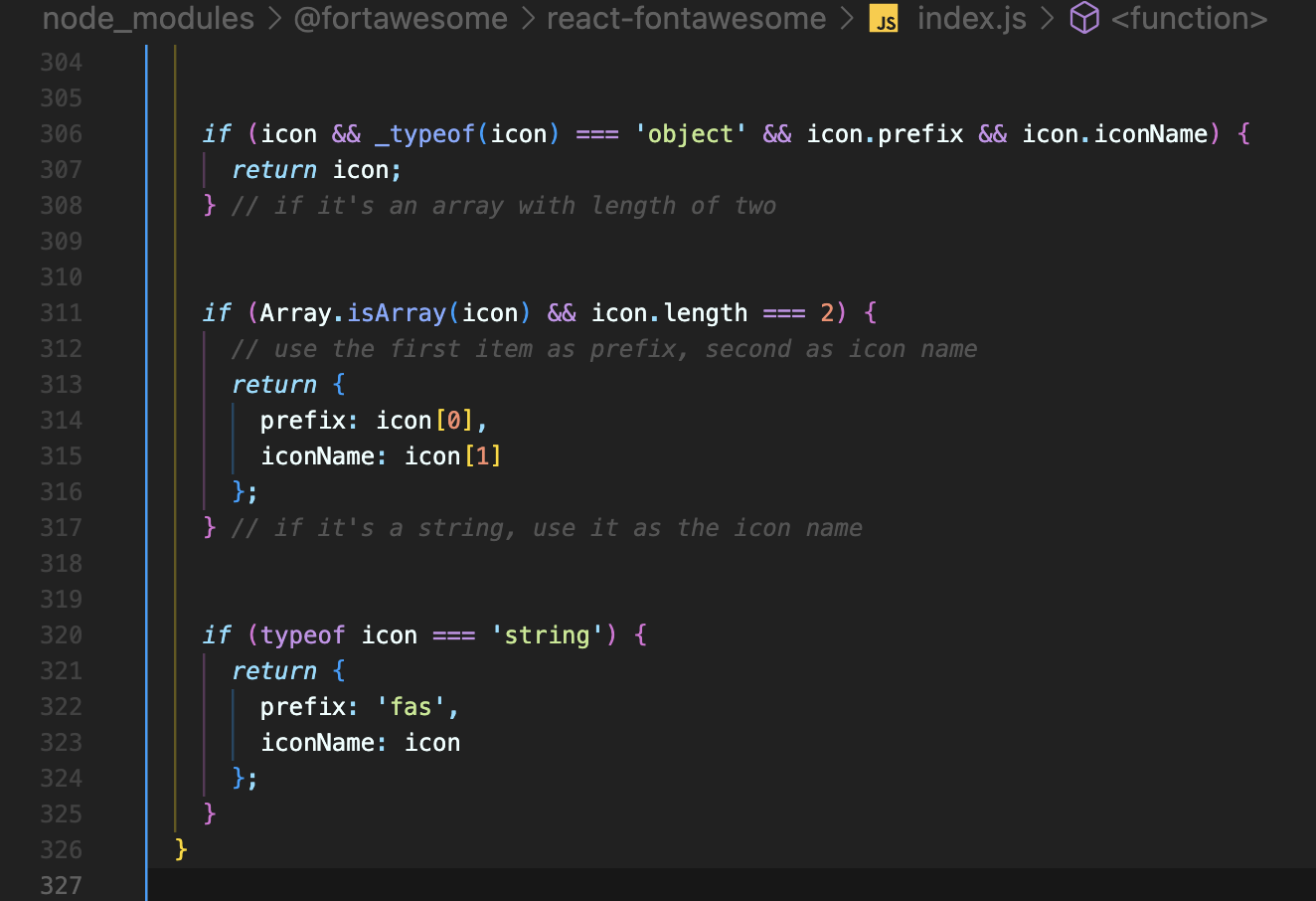 사용하는 Component 에서는 icon 에 string 형식으로 "fa-brands fa-github" 을 주거나, 만약 typescript 를 사용하여 type 에 걸린다면 [prefix, iconName] 을 주어 사용합니다. fa 와 같은 prefix 없이 string 만 주면 모듈 내부코드의 분기에 의해 자동으로 fas 를 prefix 로 사용합니다.