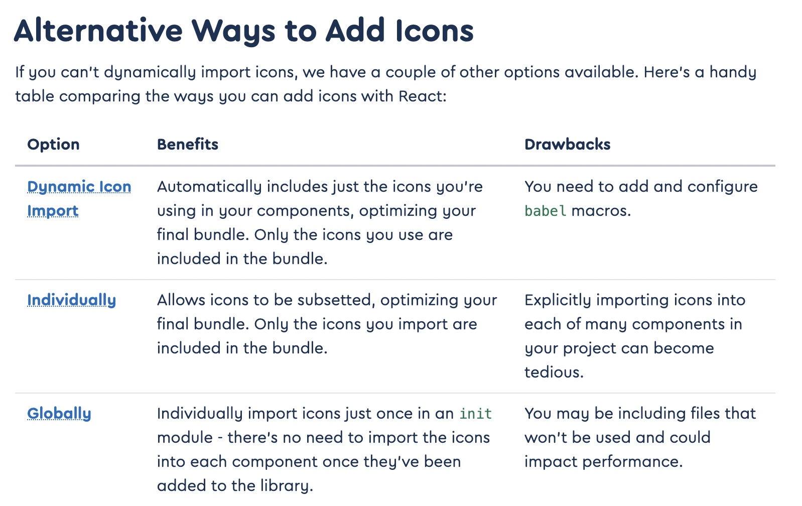 해당 방법은 번들의 크기가 커질 수 있고, Component 와 Icon 을 관리하는 모듈이 Coupling 되어 Font Awesome 에서도 권장하는 방법이 아니라고 합니다.